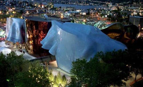 2000年6月,共花了2.4亿美元,在西雅图新落成的「体验音乐博物馆」(Experience Music Project,以下简称EMP),又一次将盖里的名字与反叛精神联系在一起,另两个人的名字是吉米.亨德里克斯(Jimi Hendrix)和保罗.艾伦(Paul Ellen)。
