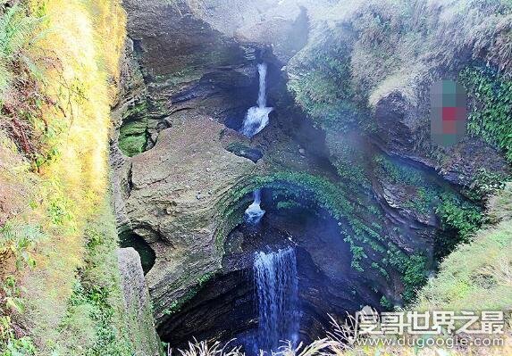 世界上最神秘的瀑布是美国明尼苏达州的魔鬼水壶瀑布,本来是一条大瀑布从山体最上方沿右下方向流动,然而流到山体一半的时候又分支为两条。前面一条很正常,一直流到山体最下 汇至河流。后面一条分支在山体一半的时候流进一个口朝上的洞穴,永远没有灌满过,如果有什么东西掉进去,可以说永远的消失了。美国明尼苏达州的“魔鬼水壶”瀑布,虽然外观正常,但却没有人知道到流下的水通往何处。