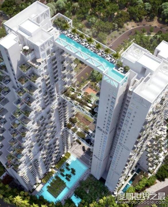 在新加坡有一处顶级的小区内,在两栋住宅楼之间有一个用“桥”连接的游泳池,如上图所示,虽说这种想法是非常好的,也非常有新意,但是你确定你有胆子上去游吗?看着都觉得吓人。