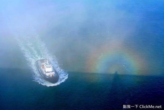 「月虹」顾名思义,就是月光下出现的彩虹,是一种非常罕见的现象。 由于月虹是通过反射月光、而不是太阳光的彩虹,所以它并没有日虹那么明亮。 6. 观音圈