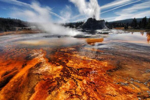 美国黄石国家公园这个宁静的地方其实是一个超级火山,这是与一个普通的火山不同的,因为它产生的喷发数量比普通的火山大千倍。哦也,这是在怀俄明州。专家说,最初的爆炸可以瞬间杀死87000人。火山灰和气体可能会极大地伤害我们。