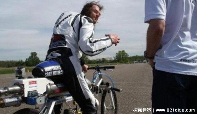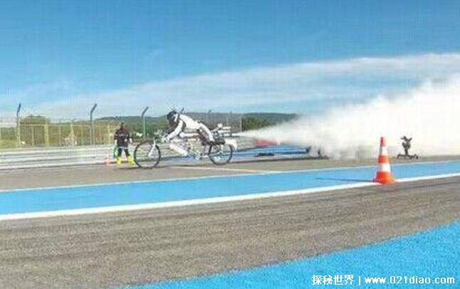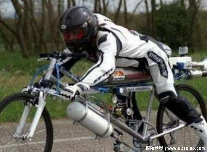 而这辆自行车能够达到惊人的333公里每小时主要是因为这辆自行车的车尾安装了3个火箭引擎,而这辆自行车所使用的燃料是高浓度的过氧化氢,燃烧是能产生巨大的推力,以此能够产生非常高的加速度,在5秒内就能提速到333公里每小时的速度。奇闻呀 wwW.QiwEnya.CoM