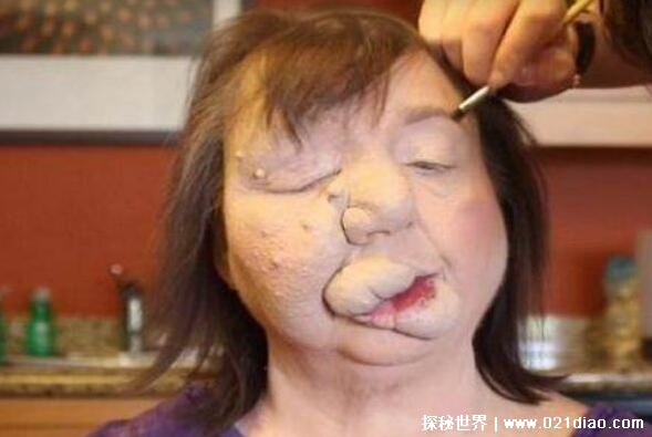而这个疾病也并没有让乔安妮变得沮丧,她一直都在努力的生活着,现在的她虽然年逾花甲,容貌也早已不在,但是她却可以通过化妆品来使自己摆脱世界上最恶心的人这个称号。