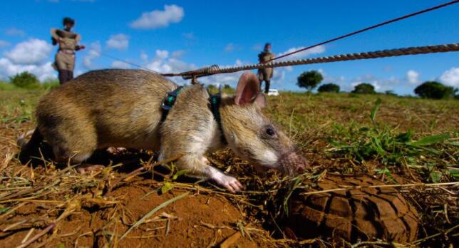 非洲巨鼠在扫雷方面可是一把能手,大家都应该知道非洲常年战火纷飞,在地下埋着很多的地雷,每年因为踩雷而死的人接近1000人,密集的地雷让排雷工作很难进行。而这时候人们发现非洲巨鼠在排雷方面是一把能手,它们排雷的优势在于十分轻巧,这样就不会引爆地雷,它们同时能够像狗一样闻出火药的气味并能够发出信号,经过一番训练就能成为排雷英雄了。