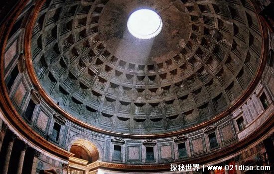 在这个神殿的内部看上去相比外部就更加的震撼了。尤其是穹顶顶部的建造,人们好像就在这可以看到整个宇宙的变化。其中的材料也大部分都是大理石,另外还有很多珍贵的珠宝,全部的建筑比例也都是严格计算的,遵循着黄金分割,可以说这个神殿是将古罗马的建筑水平发挥到了极致。就算是现在也很难可以设计出这样的建筑来。