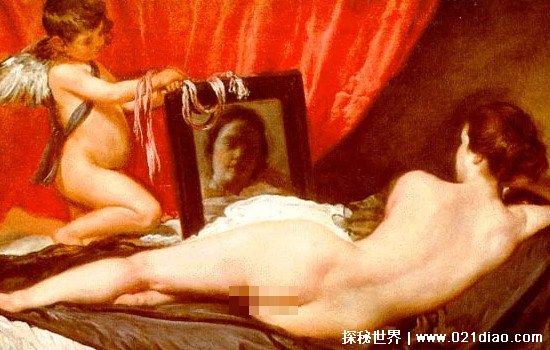 西班牙画家委拉斯凯兹的代表作。委拉斯凯兹是西班牙历史上第一位大师级画师。而《镜前的维纳斯》就是他的代表作。这幅画中的主角是希腊神话中美丽爱情智慧的代表维纳斯。画中的维纳斯是裸露全身的,并且小爱神丘比特还用了一面镜子让维纳斯可以欣赏自己的美丽身体。不过这幅画不知道由于什么原因被说成了是禁画。