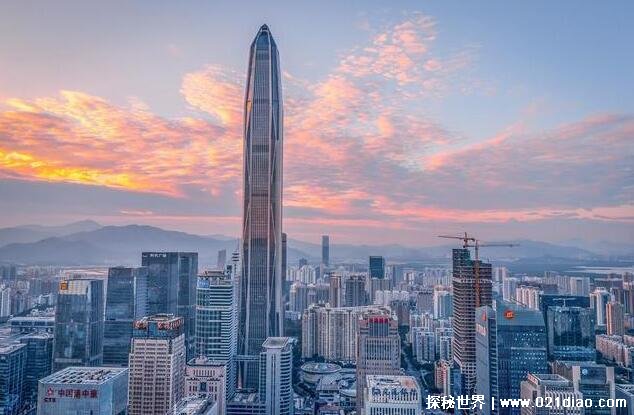 深圳平安国际金融中心在中国的高楼中排名第三,它是目前深圳最高的一座楼,建筑高度599米,也是深圳标志性的建筑之一。原本预计的建筑高度为660米,但由于其中的种种原因不得不“降高”,最后是定格在了599米上。