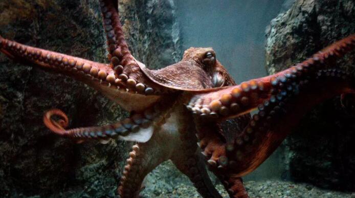 目前已知世界上最大的章鱼,北太平洋巨型章鱼,这种章鱼体型巨大,主要分布在北太平洋海岸水深65米的地方,也能够在较浅的地方居住,目前发现过最大的北太平洋巨型章鱼重达554斤,臂展达到了9.8米,被认为是世界最大的章鱼。