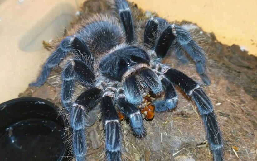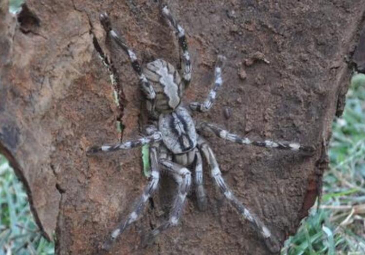 Poecilotheria Rajaei最早在斯里兰卡发现的,是世界上最大的蜘蛛之一,这只蜘蛛腿长为20.32厘米,还不算跨度,特点是腹部有一个粉色灰色带。习性是喜欢生活在枯树中、岩石和还有可能在人们的家中。