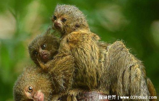 侏儒猴一般生活在南美洲亚马孙河流上游的森林中。最小的成年侏儒猴只有不到10厘米,体重也只有80克左右。而刚出生的则更小了,只有不到3厘米,体重只有几克。因此侏儒猴也就成为了世界上最小的猴子了。因为人类可以轻松的用一根手指撬起它,因此也被称为拇指猴,可以说是十分形象的比喻了。