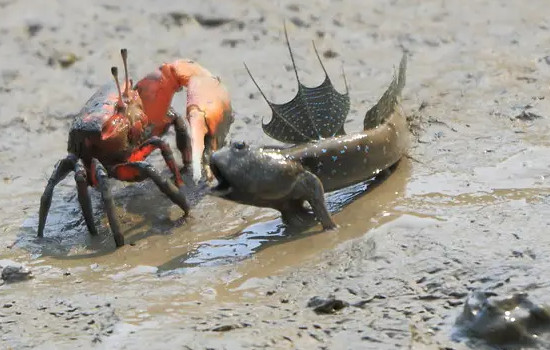 螃蟹大家见得都比较多了,不过可以变色的螃蟹大家见到过没有了?招潮蟹被认为是世界上最会变色的螃蟹。招潮蟹一天可以多次自由的变化自己的颜色,最多可以变换成八种不同的颜色。这样的变色次数完全可以和变色龙相提并论了。