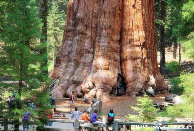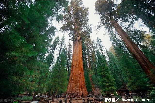 这棵被称为世界上最大的雪曼将军树位于美国加利福尼亚州的红杉国家公园内,这棵树高83.8米。底部直径达11.1米,而它的重量高达2800吨,这已经超过了15头蓝鲸的重量,这足以看出这棵树有多大了。人们认为雪曼将军树是最大的、最壮观的树。