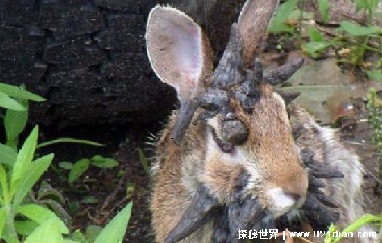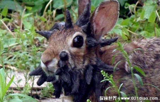 美国的一名大学生在网上发布了一段视频和一些照片,视频中是一只十分特别的兔子,这只兔子的头上和脸部长满了黑色的肿瘤,这让兔子看上去十分的恐怖,尤其是头顶的肿瘤更像是兔子的犄角。视频发布之后引起了大量网友的围观,就连美国当地的野生动物专家乔•斯坦盖尔也对此十分感兴趣,乔•斯坦盖尔怀疑这只兔子已经发生了癌变,并说这是兔子可能活不长了,头上的肿瘤对其是致命的。
