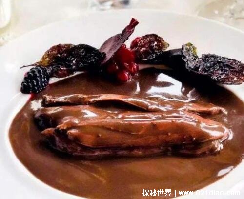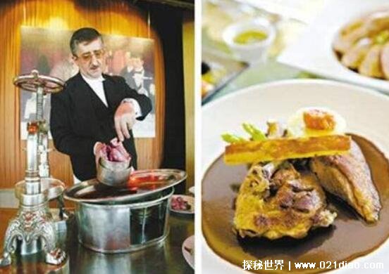 这是一道法国菜,在我们印象中法国是浪漫优雅的代表,同时法餐和红酒也非常出名。人们觉得吃法餐会特别的高级,但是在法餐中有这样一道恐怖的菜,那就是血鸭,这让许多人对于法餐的刻板印象一下就打破了。虽然这道菜卖得非常的好,肉质口感十分不错,也受到大家喜欢。