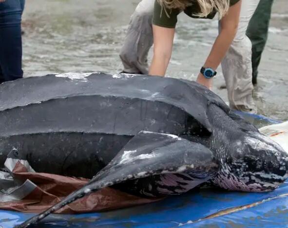 这样的巨型龟也逃不过灭绝的危机,由于梭皮龟的龟壳与一般乌龟的龟壳组成是不一样的,它们的龟壳并非全是坚硬的骨头,而是全部软化成胶质,硬度是不能与陆龟相比的,所以这也是它们经常成为大白鲨、虎鲸的口中餐。还有一个原因是,梭皮龟的视力不好,会将还有中的漂浮的白色垃圾当做是水母,误食之后消化不了,也导致了梭皮龟数量的骤减。