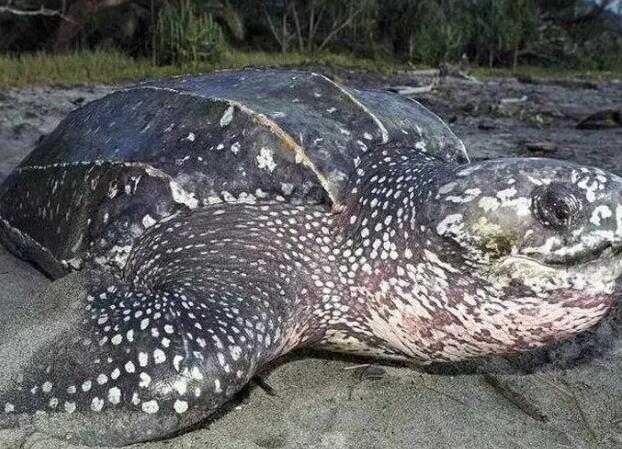 这种龟有着“龟中之王”的称号,也是世界上最大的海龟,在所有的爬行动物中,梭皮龟的体型可以排在第四,是仅次于鳄鱼的体型。体型最大的梭皮龟可以长到3米左右,并且体重将近1吨,对于陆地上最大的象龟,体长为1.8米,体重为375公斤。梭皮龟无论是在体长还是体重上都比象龟大得多。