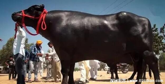 1.在印度有着这样一群高档种类的牛,这种牛叫做“苏丹牛”一般价格都十分昂贵,动辄上千万人民币。其中最出名的还是这个富豪家中饲养的“苏丹牛”,它全身皮肤都是黑色的,身高将近1米8,长4.3米,重约1.5吨。被称为是“印度神牛”,还曾有富豪开价1800万,其主人都拒绝出售。