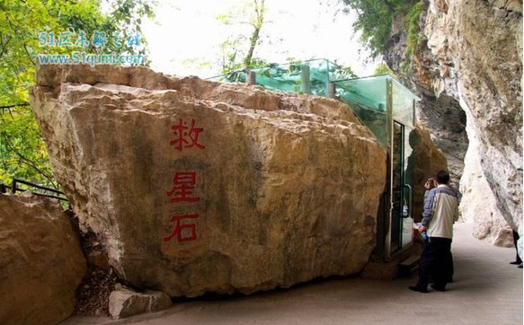 2002年6月,原任桃坡村村支书王国富在清扫景区时,无意中发现一巨石上有“产”、“党”两个大字,他把长期堆放在巨石间的秸秆搬开后,发现石壁上隐约有“中国gong产党”五个大字的岩石图案,字体匀称方正,每字近一尺见方,笔画突出于石面,如浮雕。掌布发现神奇石头的消息不胫而走,一传十,十传百,前来探寻的游客先后给这块神奇的石头取下了“天书”、“藏字石”、“党名石”、“太阳石”、“神石”等名称,而当地村民出于对中国gong产党的热爱和敬仰,把这块坠石称为“救星石”。“救星石”被多家媒体报道出来后,立刻引发争议:这几个字是天然形成的,还是人为打造的。如果这几个字如当地人所说早就存在,为何多年以来没被发现。