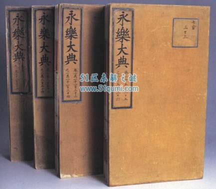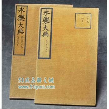 《永乐大典》编撰于明朝永乐年间,是由姚广孝以及内阁首辅解缙总编的一部中国古典集大成的旷世大典,初名《文献大成》,是中国百科全书式的文献集,全书22937卷(目录占60卷),11095册,约3.7亿字,汇集了古今图书七八千种,显示了中国古代科学文化的光辉成就,但《永乐大典》除了正本尚未确定是否存在长陵外,永乐副本却惨遭浩劫,大多亡于战火,今仅存800余卷且散落于世界。《不列颠百科全书》在“百科全书”条目中称中国明代类书《永乐大典》为“世界有史以来最大的百科全书”。