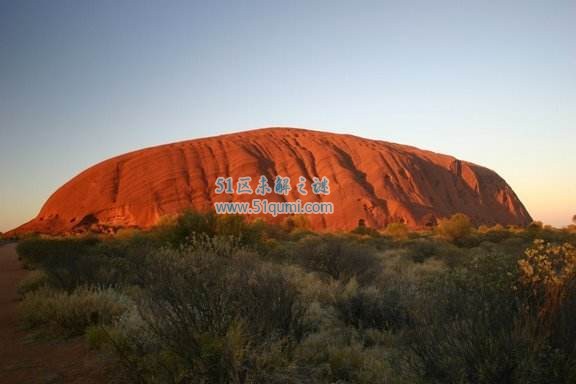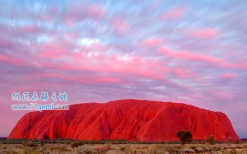 还有科学家认为,几亿年前,离地球运行轨道较近的一颗小行星因偏离了自己的轨道,坠入大气层而最终陨落到此。岩石的三分之二沉入了地下,三分之一露出地面,经过抬升,风化等地质变迁形成了今天的艾尔斯岩石。