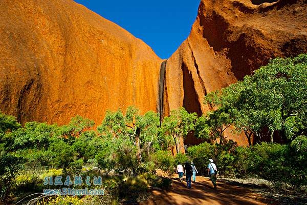 艾尔斯巨石,又名乌鲁鲁巨石,艾尔斯巨石高348米,长3000米,基围周长约9.4公里,东高宽而西低狭,是世界最大的整体岩石。它气势雄峻,犹如一座超越时空的自然纪念碑,突兀于茫茫荒原之上,在耀眼的阳光下散发出迷人的光辉。