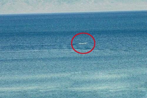 而在2007年6月,时值新疆首届环赛里木湖自行车赛第三赛段发车前夕,在赛里木湖的湖面上,突然出现一个体长约十米的庞然大物在水中游动。 当时在场的记者胡维斌发现了这一情况,连忙拿出相机想要拍了下来,但可惜当时它的相机镜头是105毫米的,所拍的画面不够清晰,不过通过照片还是可以看到,不明水生物掀起的白色浪花和水波波纹。奇闻呀 wwW.qiWenya.COm