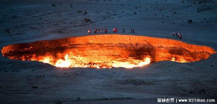 在1971年的时候,一位苏联的地质学家在土库曼斯坦做勘探工作的时候,发现一个充满天然气的地下洞穴,但是一直比较害怕里面会冒出天然气体,因此索性将大坑点燃,令他没有想到的是,这一把火,促进了地狱之门的形成。火点燃后,地底发生塌方,形成了一个70米的深坑,而且里面的天然气也一直在燃烧,地狱之门也就此形成。