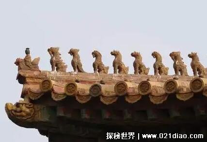 在故宫的屋檐上会看到它们的身影,嘲风平生好好险且好望,是吉祥的象征,同时也具有驱除邪恶的作用,像一个守护神一样,所以宫殿的屋檐上会常看到用嘲风作为装饰,也是整个宫殿看起来大气恢弘。