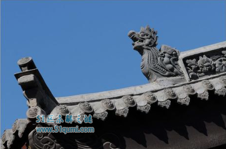 鸱吻,喜欢生吞东西,喜欢水讨厌火,因此常出现在建筑的屋脊上,可以辟邪避火。