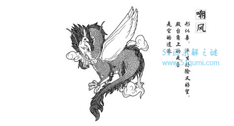 嘲风像一只畸形的龙,四肢强健,喜欢冒险瞭望。民间供奉它,多因为它能辟邪避魔,能带来好运。