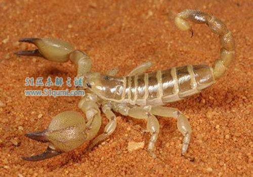 巴勒斯坦毒蝎是地球上毒性最强的蝎子,生活在以色列和远东的其他一些地方。是地球上毒性最强的蝎子,它那长长的螯的末尾,是带有很多毒液的螯针,趁你不注意刺你一下,螯针释放出来的强大毒液让你极度疼痛,抽搐,瘫痪,甚至心跳停止或呼吸衰竭。