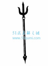 这种兵器的样式应该叫做“凤翅镋”或“凤翅镏金镋”,因为它的两边外展象是凤凰翅膀而得名。一般这种兵器是镏金的。所以有人叫它“凤翅镏金镋”,是宇文成都的兵器。