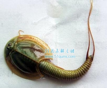 三眼恐龙虾,学名:佳朋鲎虫,在中国各地又俗称马蹄管子、王八盖子、翻车车、屎壳郎崽、数钱锁等,是已知的鲎虫中唯一在中国发现的一种。其最早出现在三亿年前的古生代石炭纪,在经历了三次地球世纪大灭绝之后,至今仍有数种品系存活,并广泛地分布于世界各地。是属于鳃足纲,鳃足亚纲,背甲目的一类小型的甲壳动物。