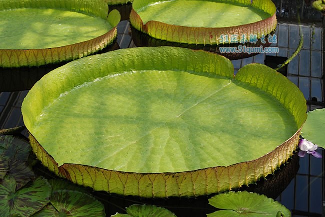 王莲是一种巨大的植物,更是被称为是“水中花王”,王莲最神奇的就是它的叶子,王莲的叶子直径可以达到4米左右,如此巨大的叶子可不是长着好看的,王莲的叶子有非同寻常的承载力,可以坐上一个小孩子不用担心会沉底,王莲最多可以承受60公斤的重量,水中花王之名名不虚传。