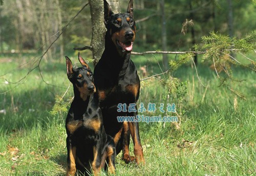 杜宾犬,即笃宾犬,原产德国,它是根据培育这一品系人的名字路易斯·杜宾曼先生命名的,是所有品系中极富智慧的并且身体结构最为优秀,气质最为高贵的一种。杜宾犬是军、警两用的犬只,同时国内也有部分人将未裁耳、断尾的杜宾当做猎犬使用。杜宾犬是天生的警卫犬,聪明,力强,胆大,敏感、坚决、果断、好撕咬。目前的杜宾犬的体形已经比早期的品种更加精致、匀称,当然,它们仍旧是战斗的高手和警觉性高的守卫者。奇闻呀 wWW.qIwEnYa.coM