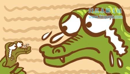 古代西方传说,鳄鱼既有凶猛残忍的一面,又有狡猾奸诈的一面。当它窥视着人、畜、兽鱼等捕食对象时,往往会先流眼泪,作悲天悯人状,使你被假象麻痹而对它的突然进攻失去警惕,在毫无防范的状态下被它凶暴地吞噬。另一说,是鳄鱼将猎物抓捕到手之后,在贪婪地吞食的同时,会假惺惺地流泪不止。总之,此语是喻指虚假的眼泪,伪装的同情。而后约定俗成地引申为专门讽刺那些一面伤害别人、一面装出悲悯善良之态的阴险狡诈之徒。