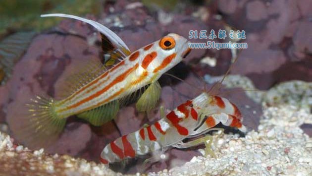 虾虎鱼和枪虾是大自然中十分罕见的共生关系,枪虾会挖一个洞,然后就会有虾虎鱼过来一个同住,而作为回报,虾虎鱼会保护枪虾的安全甚至是提供食物给枪虾,通常虾虎鱼坐在洞穴的入口处,枪虾忙着清理通道,当枪虾出来倾倒沙石时,它总把一根触须搭在虾虎鱼的身上,其他鱼来袭时,虾虎鱼一动身,枪虾就逃回洞中,这种两个不同物种之间的微妙关系正是大自然奇妙的一幕。