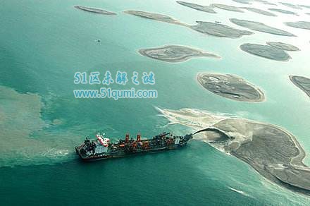 世界岛并不是大家所想像的孤独地漂浮在水面上,而是通过填海造陆实现的,设计师从附近海域用工程船挖沙,然后喷到世界岛区域造陆,这样当然会需要大量的沙子,工程车来回挖沙也是一项巨大的工程,仅仅一项地基性的项目就会花费如此大的成本,也是开发商在预算时没有预料到的。