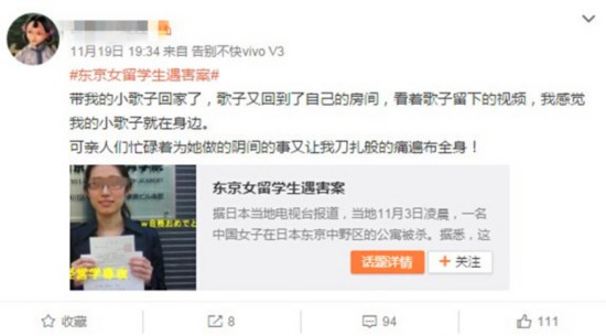 江歌遇害案发生于日本时间11月3日凌晨,江歌在其租住的公寓中被杀害。案发前15分钟,江歌还曾报警称公寓外有可疑人物,但当警方赶到时,江歌却已倒在血泊中。日本警方公布,江歌头部遭利刃砍伤,在被送往医院不久后伤重不治身亡。