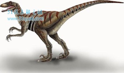 恐爪龙,是驰龙科恐龙的一属,身长约3.4米,生活于下白垩纪的阿普第阶中期至阿尔布阶早期,距今约1亿1500万-1亿800万年前。因为它的后肢第二趾上有非常大,呈镰刀状的趾爪,在行走时第二趾可能会缩起,仅使用第三、第四趾行走。一般认为恐爪龙会用其镰刀爪来割伤猎物,但近年就迅猛龙重建模型的测试显示这爪作刺戳之用,而非割划。