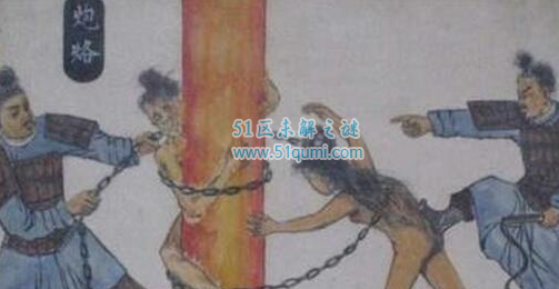 炮烙,古史传说和史籍上说是殷纣王所为,也就是说,是发生在纪元前十一世纪的商朝末年的事。炮烙,古代酷刑,用炭火烧热铜柱,将人绑于铜柱上烧死,即坠炭上烧死。后来泛指用烧红的铁烧烫犯人的刑具。