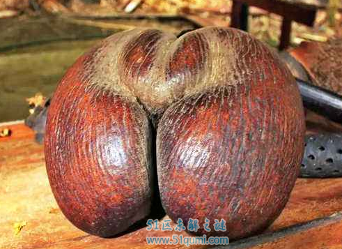 海椰子亦称复椰子、海底椰。是塞舌尔普拉兰岛及库瑞岛的一种特有棕榈,树高20~30米;树叶呈扇形,宽2米,长可达7米,最大的叶子面积可达27平方米,活像大象的两只大耳。由于整座树庞大无比,所以也被称为 树中之象 。花著生于巨大的肉质穗状花序上,雌雄异株。果实被一肉质而多纤维的外皮,里面坚果状的部分通常2瓣,似两个椰子,可食但商业价值不大。海椰子是已知最大的果,约需10年才成熟。海椰子可以在海上漂浮,但不能在海滩上生长,不能随海水远走他乡中生长。因此海椰子只在塞舌尔生产。
