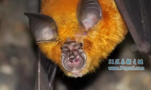 中华菊头蝠,哺乳类、脊索动物门、兽纲、翼手目、菊头蝠科。一种十分常见的中型菊头蝠;毛色为橙色、锈黄至褐黄色;眼小耳大,耳朵有对耳屏;鼻叶较宽,联接叶侧面线条圆钝,呈三角形的顶叶发达,下缘凹陷。奇闻呀 wWw.qiWeNYA.coM