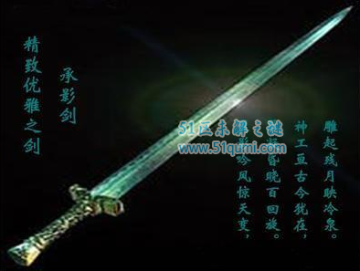 上古名剑,十大名剑之一。曾为商天子、春秋时卫人孔周所有,与含光、宵练齐名,并称商天子(王帝君主圣帝)三剑。商天子三剑,从辞源角度看,「商天子三剑」本是一个哲学的用语,以上古存在的三把神剑喻道,它首出于《列子·汤问》篇。承影是一把精致优雅之剑,相传出炉时,“蛟分承影,雁落忘归”,故名承影。后有由春秋时卫国藏剑名家孔周收藏。