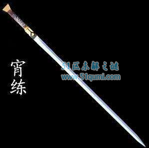 上古名剑,铸造者不详,曾为商天子、春秋时卫人孔周所收藏,与含光,承影齐名,并称商天子(王帝君主圣帝)三剑,《列子·汤问》中有记载。也叫“霄练”。商天子三剑,从辞源角度看,「商天子三剑」本是一个哲学的用语,以上古存在的三把神剑喻道,它首出于《列子·汤问》篇。古代传说中的名剑。曾被商帝王、春秋时期卫人孔周所藏。《列子·汤问》:“孔周曰:吾有三剑,惟子所择……三曰宵练,方昼则见影不见光,方夜则见方而不见形。其触物也,骜然而过,随过随合,觉疾而不血刃焉”。一作“霄练”。