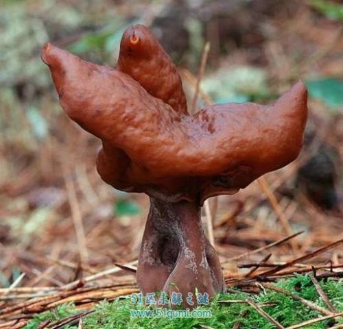 头套鹿花菌学名为赭鹿花菌,人们可能会将这种褐色鞍状蘑菇与一种美味可口的可食用蘑菇混淆。赭鹿花菌含有gyromitiri-n毒素,这种毒素在人体会转化为甲基联氨,甲基联氨是火箭燃料的原料之一。赭鹿花菌吃进腹中一开始或许没有其他蘑菇那么致命,但日子久了,它会逐渐对人体产生有害影响,可能是一种致癌物。