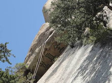 是华山著名的人文景观,属华山三大谜之一,为松桧峰顶向南悬空倾伸出的一面巨大岩石,出长空栈道可到达岩下,岩腹间有贺老石室,是元代初年全真派道士贺志真开辟的修身之地。岩高数十丈,上书“全真岩”三字,每字大约七八尺高,并涂以红色。镌刻于此,上不可上,下不可下,难道刻字的人是站在空中所为吗?多么神奇的壮举。 推荐楼主上游多多上看一下