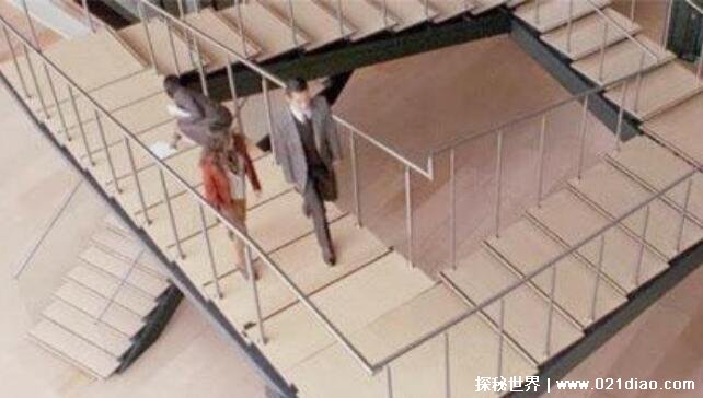 那么这样的悬魂梯要怎么破解呢,要想破解它就从它的原理入手,它既然是利用人的视觉误差让其一直绕圈子的话,那就直接避开这个坑,不靠视觉来判断,直接扶着墙壁走,墙壁是不会骗人的,因此就可以避免这种误差。