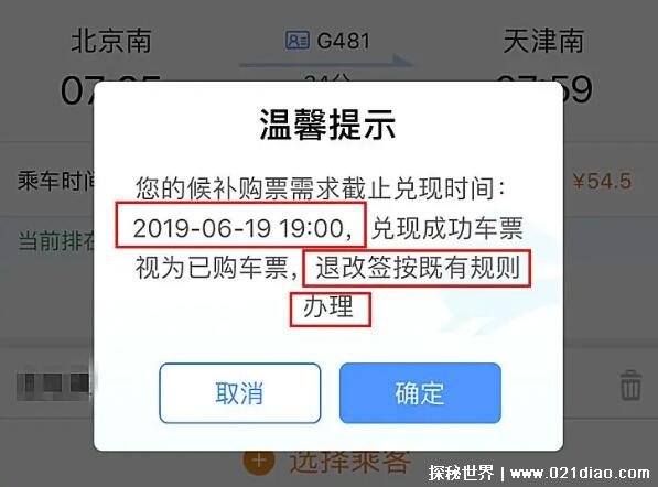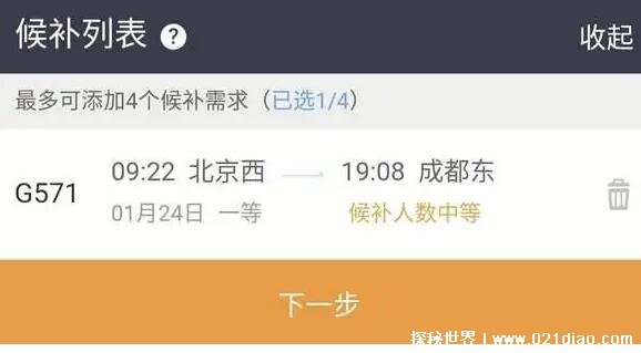 2、火车候补票相当于备胎,火车票都是一个萝卜一个坑,占完就没有了,候补票就是某个萝卜离开,你就可以补充上,没有选择哪个坑位的权利,只有被动接受的权利,当然你也可以选择取消,其坑位就会自动让给下一位“备胎”。