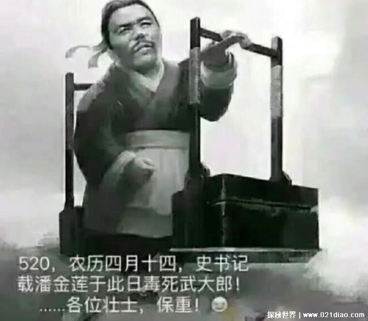 其实武大郎并不是在520被毒死的,历史中武大郎的死最多的是这个:“丙申,宋徽宗.政和六年,公元1116年,正月十三日,王婆殴打乔郓哥。正月十四日,武大捉奸被殴。正月二十一日,潘金莲毒杀武大。正月二十二日,西门庆向何九行贿。武大成殓。正月二十四日,武大火葬,何九盗骨殖。”所以武大郎并不是死于520。